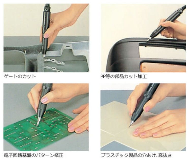 - Khi điện áp được đặt vào, bộ rung gốm tích hợp bắt đầu rung, tạo ra sóng siêu âm. Sóng siêu âm này được khuếch đại thêm bằng chi tiết phóng đại biên độ và bằng cách rung dụng cụ cắt ở đầu lưỡi cắt 40.000 lần mỗi giây, nó có thể được cắt dễ dàng và nhẹ nhàng.