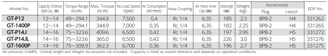 GT-P6T Air Impact Wrench, Torque Control Type | GT-P8T Air Impact Wrench, Torque Control Type |