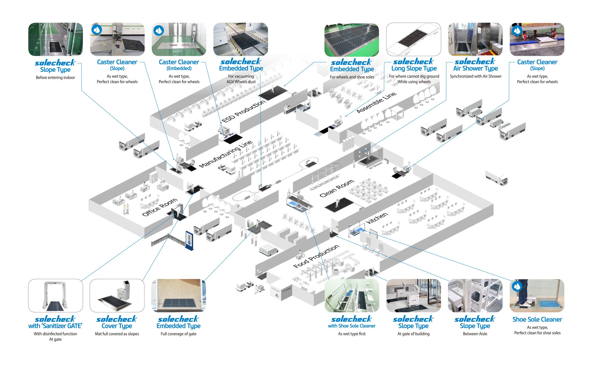 - Thảm hút bụi giày dép Solecheck là sản phẩm tiên tiến được thiết kế để loại bỏ bụi, đất, vi khuẩn và hạt mịn từ đế giày, ngăn không cho chúng xâm nhập vào không gian nội thất.